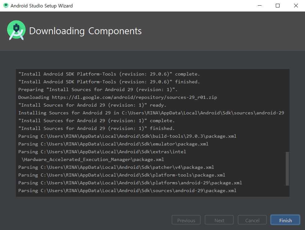 저는 우선 안드로이드 스튜디오를 설치하기 전에 사용자 계정 이름을 영어로 바꾸는 것을 추천드립니다. (C: 안의 사용자 (User)안에 사용자 이름이 있습니다. 확인해보시길 바랍니다.) 그래야 설치하기 쉬워요,,, ㅎ