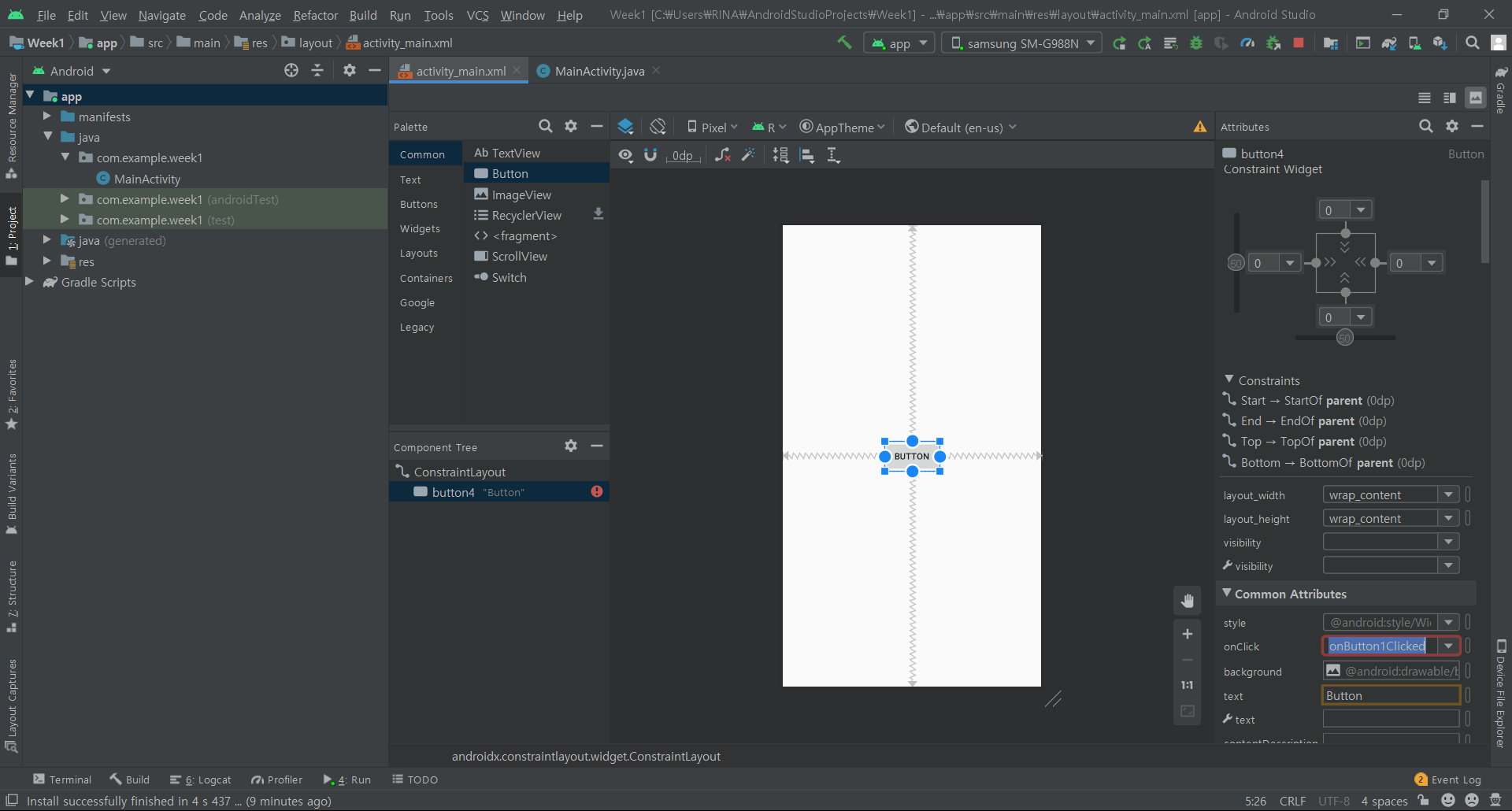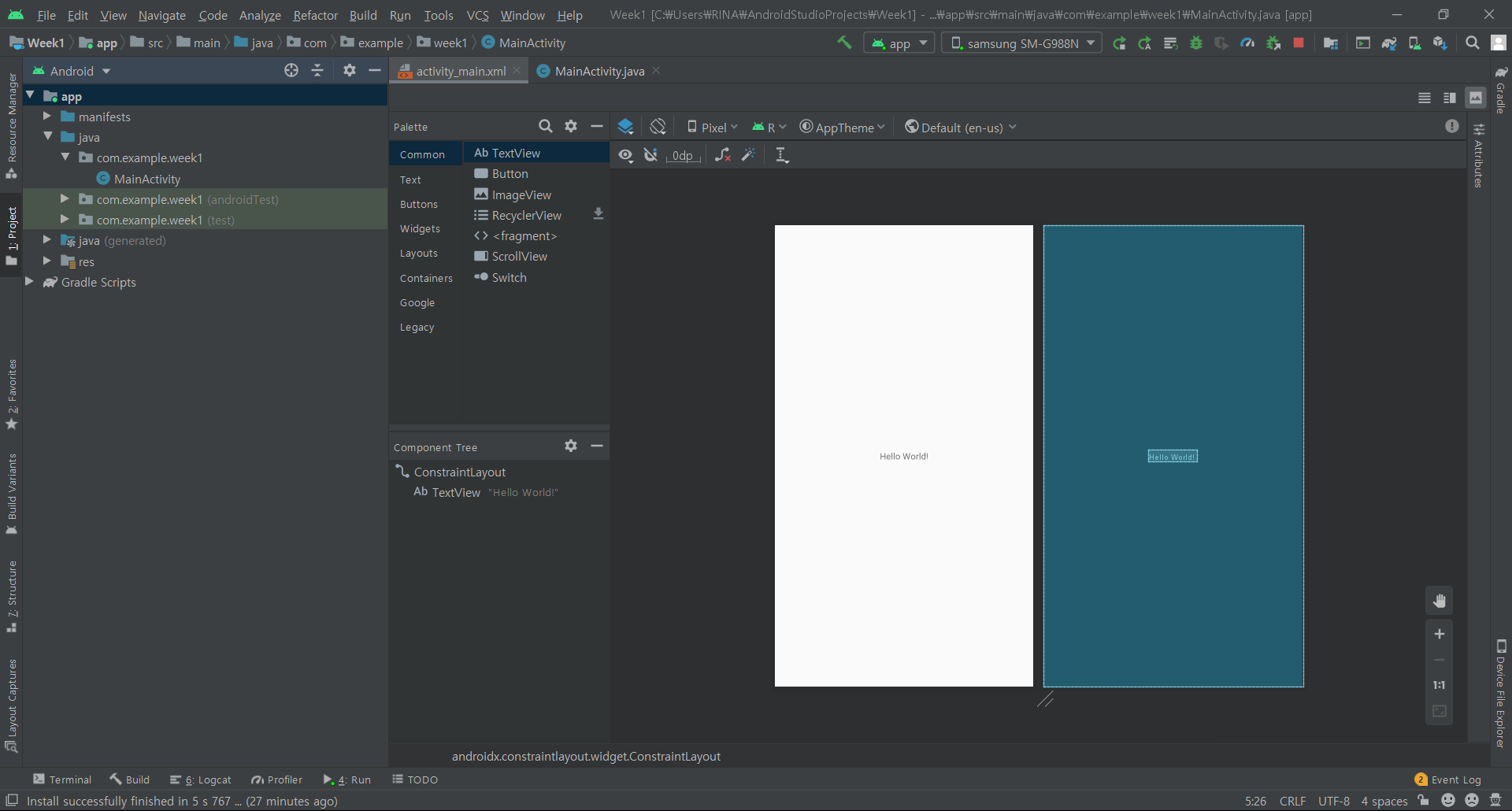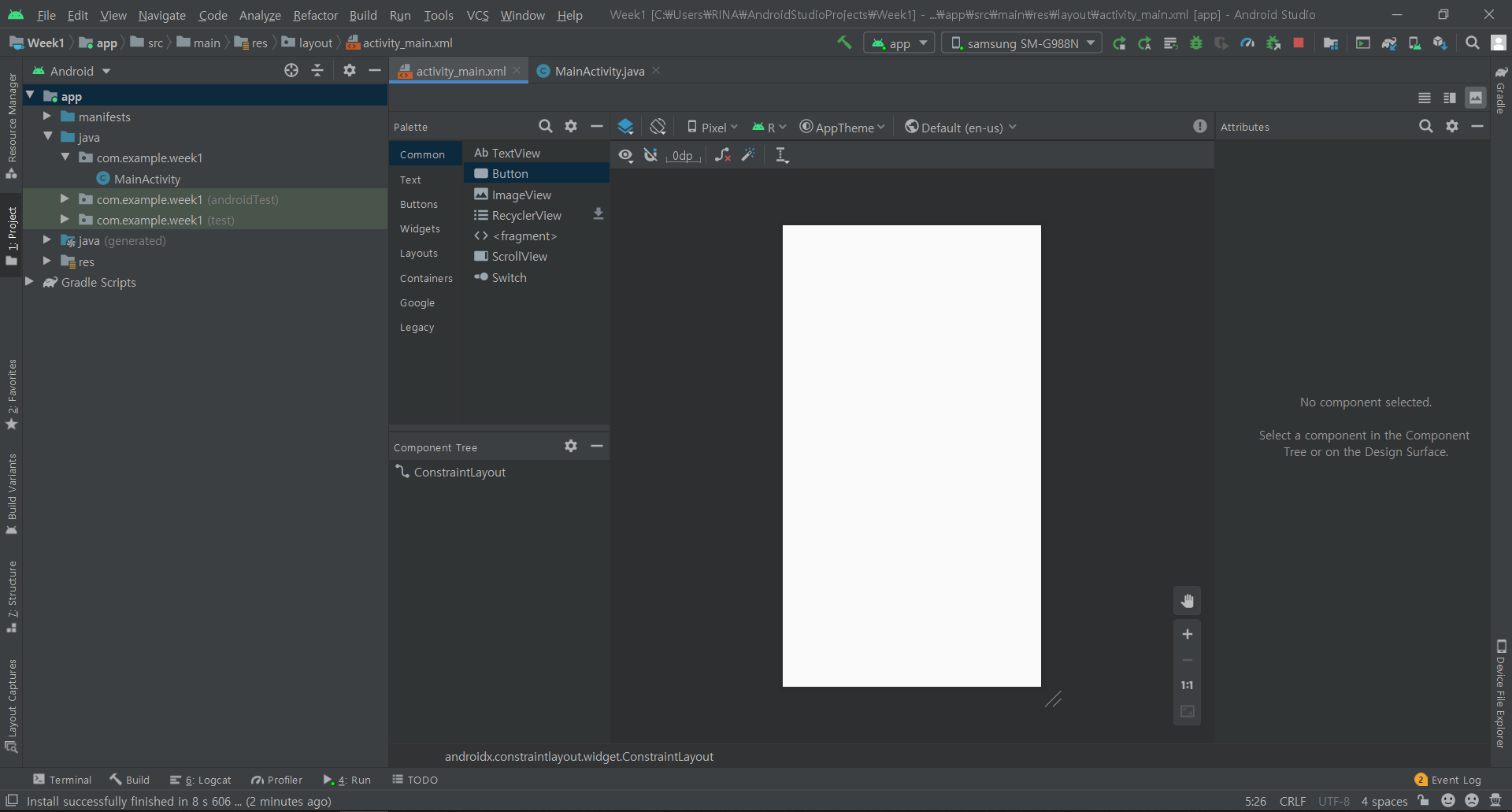 MainActivity.java 파일은 app/java/com.example.week1 내부에 있고