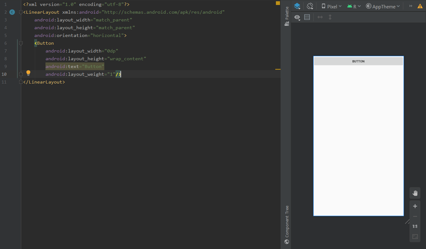 뷰가 하나일 때에는 weight의 의미가 없습니다. 하지만 버튼이 두개가 된다면 어떨까요