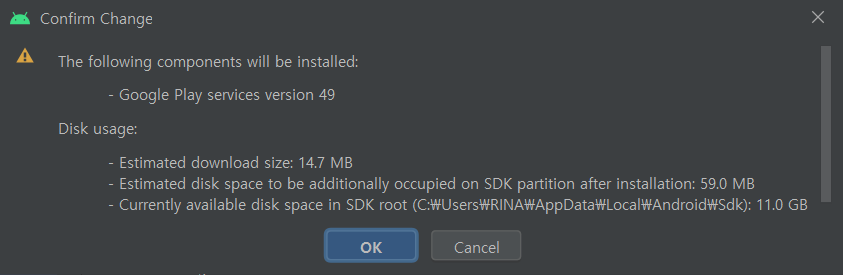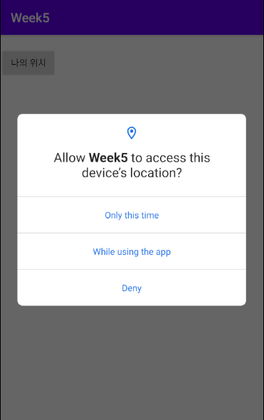 GPS를 이용해 위치 정보를 받기 위한 권한은 ACCESS_FINE_LOCATION으로 정의되어 있으므로 앞에서 이 권한은 추가했습니다. 그런데 이 권한은 위험 권한으로 분류되어 있으므로 위험 권한을 부여하는 설정과 코드를 추가하겠습니다.