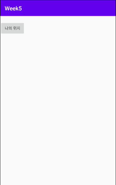 activity_main.xml에서 TextView와 Button을 하나씩 만들어 줍니다. 버튼을 누르면 내 위치 확인을 시작하도록 하고 위치가 확인되면 텍스트뷰에 보여줄 것입니다.